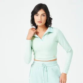 RETROGRADE NOTCHED CROP TOP – DARK FOREST