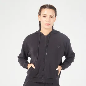 ESSENTIAL RELAXED ZIP UP HOODIE – BLACK