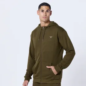 ESSENTIAL ZIPPED HOODIE – DARK OLIVE